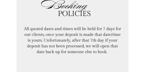 A 25% rush fee will be added to all bookings made within a two-week window of your event's date. Final payment on your event is due 14 days prior to your event date.